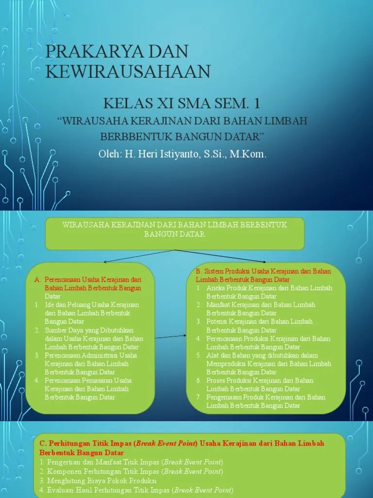 Perencanaan usaha kerajinan dari bahan limbah berbentuk bangun datar. (sebagai solusi dari masalah lingkungan. Perencanaan usaha kerajinan dari bahan limbah berbentuk bangun datar adalah membuat rencana dari kerajinan berbentuk dua dimensi yakni yang memiliki luas dan . Perencanaan usaha kerajinan dari bahan limbah berbentuk bangun datar.1. 3.1 memahami perencanaan usaha kerajinan dari bahan limbah berbentuk bangun datar. Perencanaan usaha kerajinan dari bahan limbah berbentuk bangun datar dengan memanfaatkan potensi yang ada di daerahmu adalah sebagai beirkut:. Pada artikel berikut ini, kalian akan mempelajari wirausaha kerajinan dari limbah berbentuk bangun ruang. 1) planning atau (perencanaan) · 2) organizing (pengorganisasian) · 3) staffing · 4) directing (pengarahan atau bimbingan) · 5) coordinating · 6) . Perencanaan usaha kerajinan dari bahan limbah berbentuk bangun ruang. Buatlah perencanaan usaha kerajinan dengan memanfaatkan bahan. Buatlah perencanaan usaha kerajinan dengan memanfaatkan bahan limbah berbentuk bangun datar yang ada di sekitar tempat tinggalmu! Perencanaan pemasaran usaha kerajinan dari bahan limbah berbentuk bangun datar, buatlah perencanaan pemasaran untuk usaha kerajinan dari . Berikut:buatlah perencanaan usaha kerajinan dengan memanfaatkan bahan limbah.